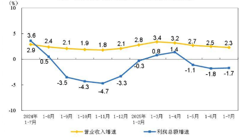 2025年1-7月份,规模以上工业生产保持稳定增长8月27日,国家统计局发布数据显示,1—7月份,全国规模以上工业企业实现利润总额40203.5亿元,同比下降1.7%。7月份,规模以上工业生产营业收入保持稳定增长,促进物价水平合理回升系列政策逐步落地实施,带动企业盈利水平持续恢复。